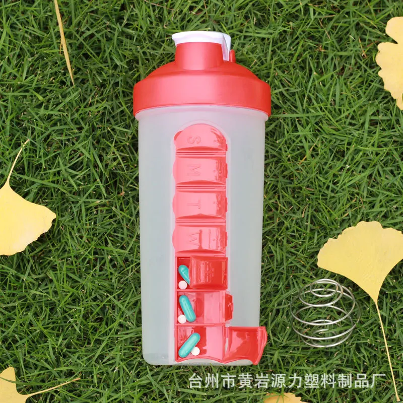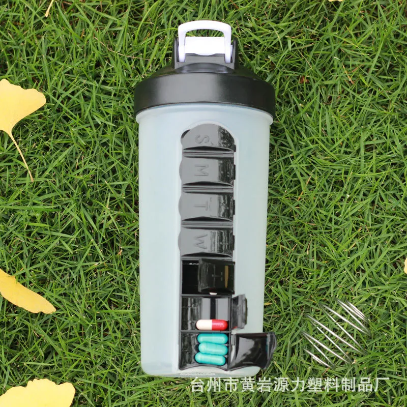 来源工厂运动搅拌杯600ML摇摇杯带提手运动健身7天7天药盒摇摇杯